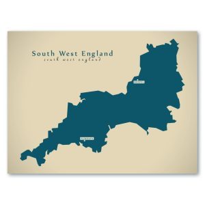 South West England Karte (Großbritannien) – Moderne Landkarte – Wandbild Kunstdruck Poster Map