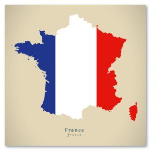 Frankreich Karte mit Nationalfarben – Moderne Landkarte – Wandbild Kunstdruck Poster Map