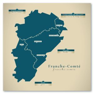 Franche-Comte Karte (Frankreich) – Moderne Landkarte – Wandbild Kunstdruck Poster Map