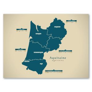 Aquitaine Karte (Frankreich) – Moderne Landkarte – Wandbild Kunstdruck Poster Map