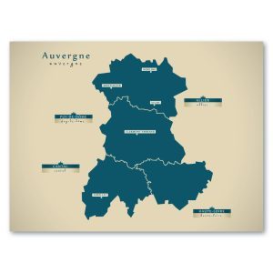 Auvergne Karte (Frankreich) – Moderne Landkarte – Wandbild Kunstdruck Poster Map