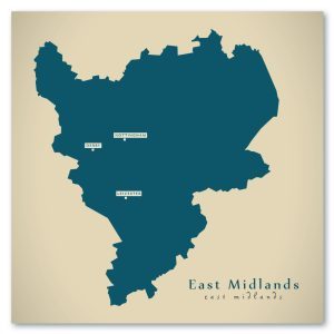 East of England Karte (United Kingdom) – Moderne Landkarte – Wandbild Kunstdruck Poster Map