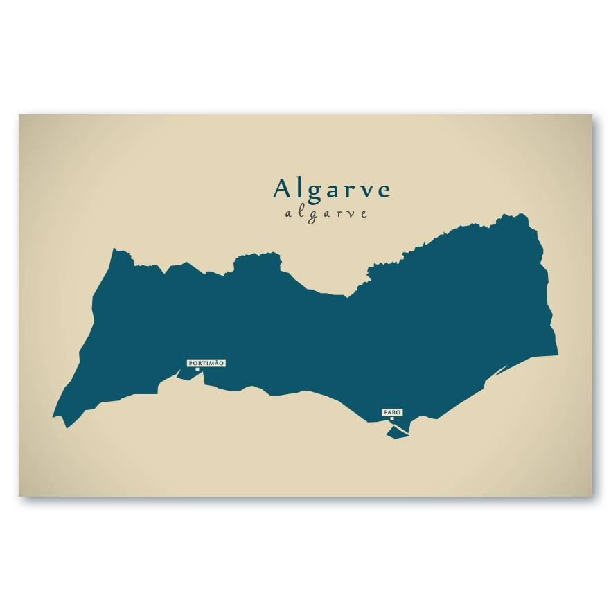 Algarve Karte (Portugal) – Moderne Landkarte – Wandbild Kunstdruck Poster Map
