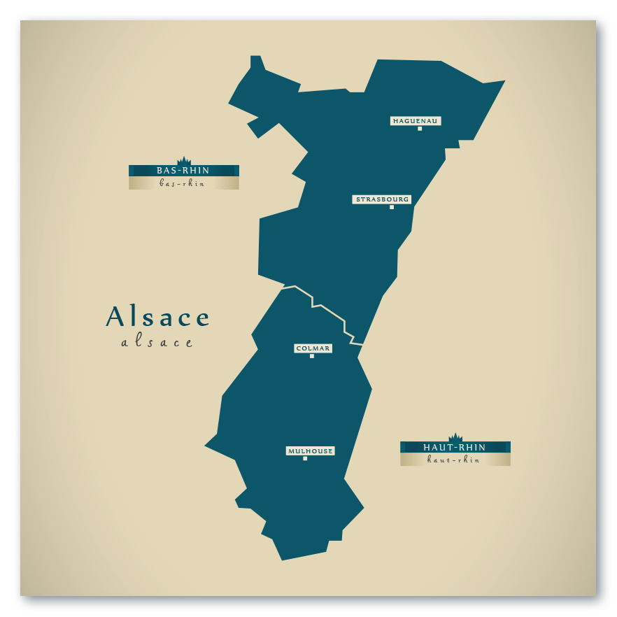 Alsace Karte (Frankreich) – Moderne Landkarte – Wandbild Kunstdruck Poster Map