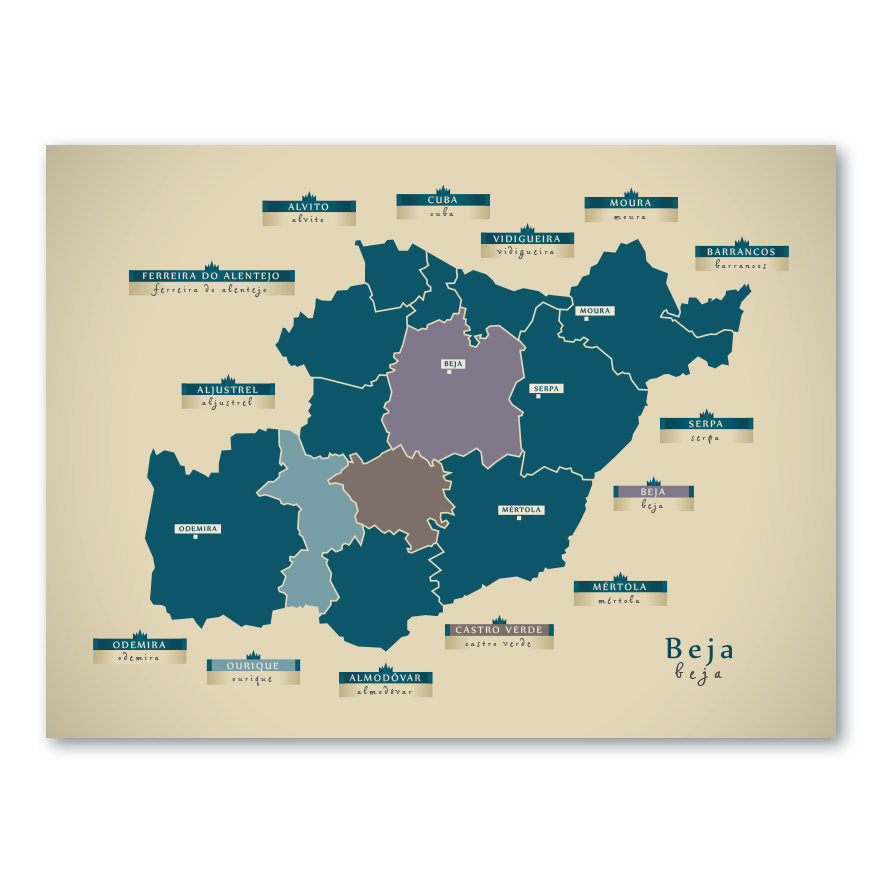 Beja Karte (Portugal) – Moderne Landkarte – Wandbild Kunstdruck Poster Map