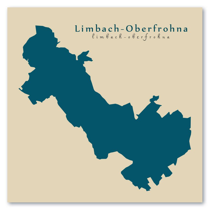 Limbach-Oberfrohna Karte (Sachsen) – Moderne Landkarte – Wandbild Kunstdruck Poster Map