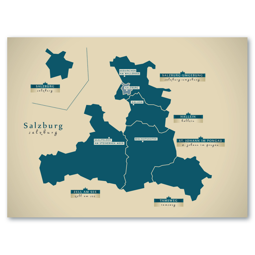 Salzburg Karte (Österreich) – Moderne Landkarte – Wandbild Kunstdruck Poster Map